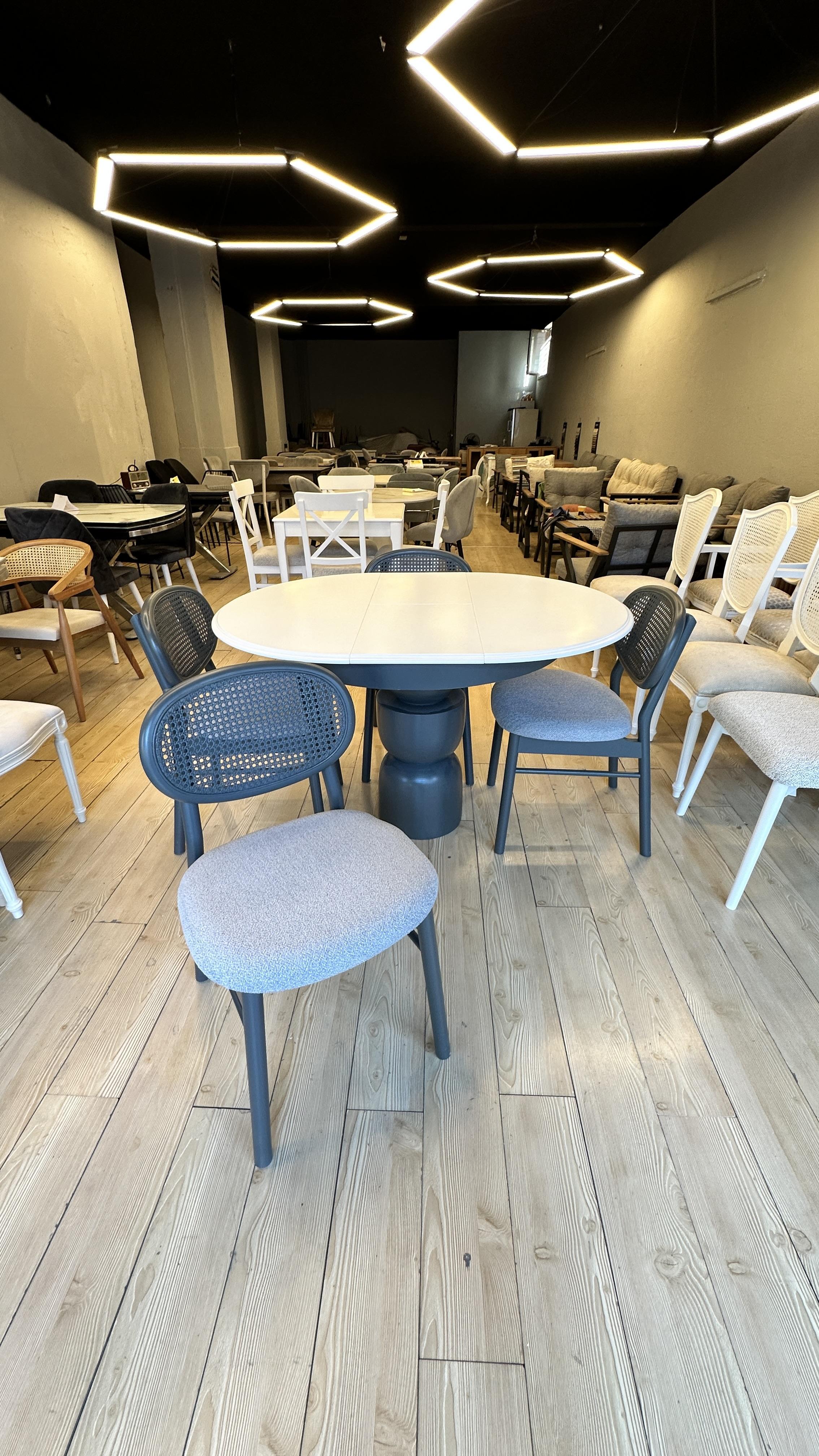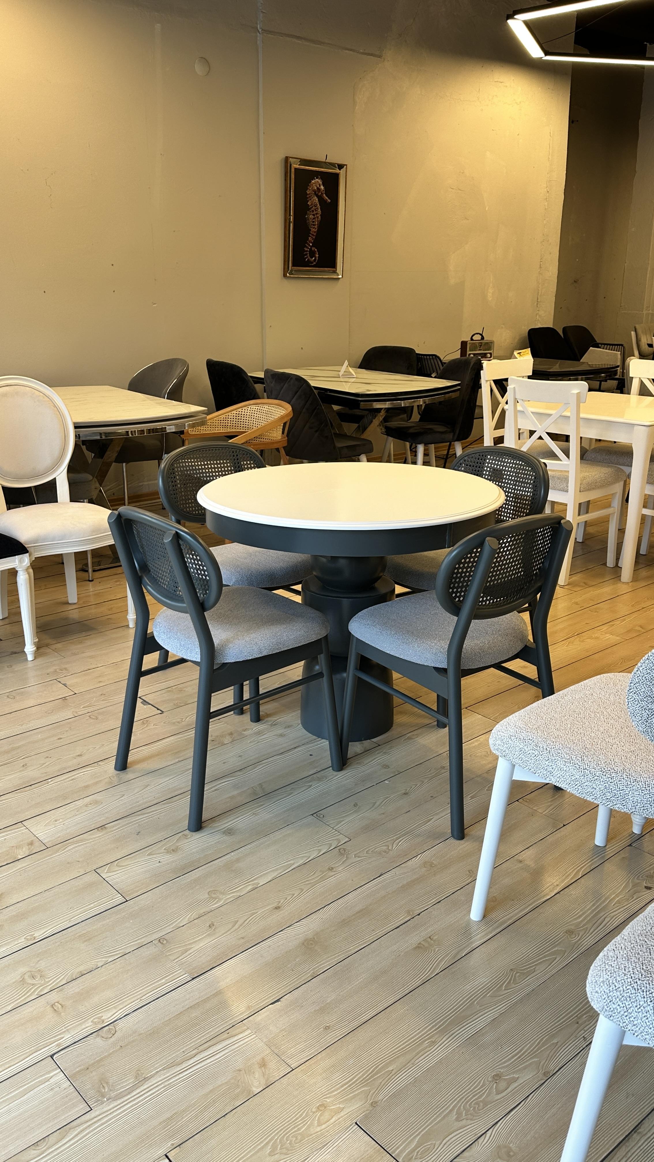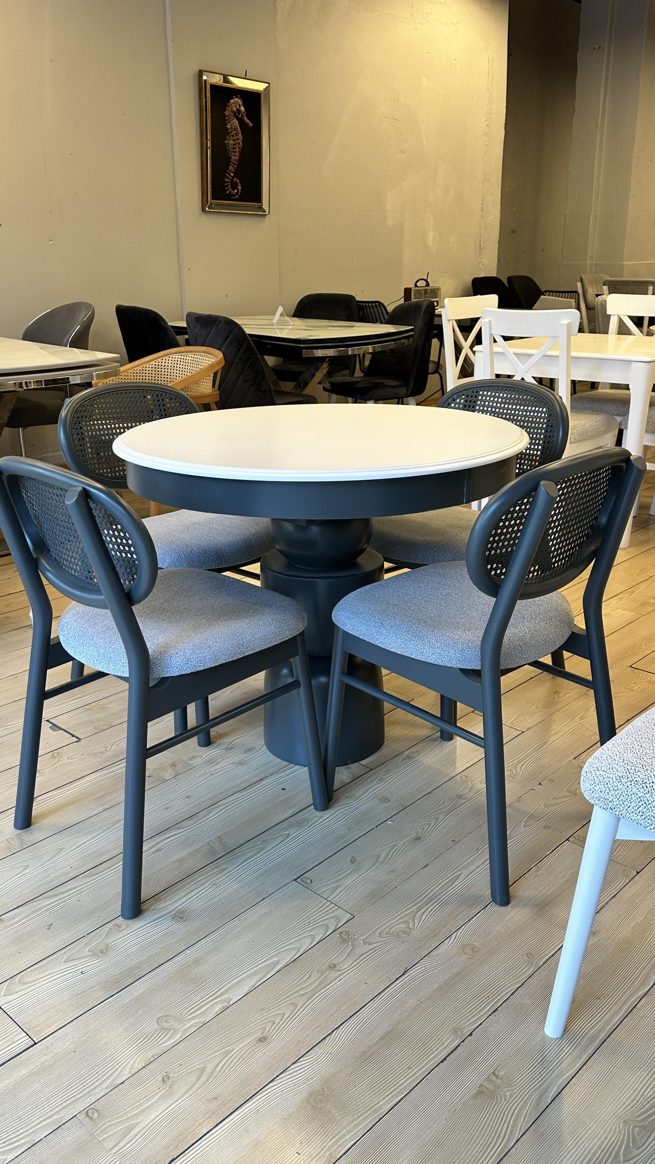 Mekanınızda estetik ve işlevselliği bir arada sunan şık bir yemek takımı arıyorsanız, bu özel tasarım tam size göre! 4 adet Hazeranlı Mayami sandalye ve 100 cm çapında açılır masa ile hem zarafeti hem de konforu bir arada bulacaksınız. Doğal ahşabın sıcaklığı ve Hazeran detaylarının zarafeti ile öne çıkan bu takım, mekânınıza sofistike bir hava katacak.